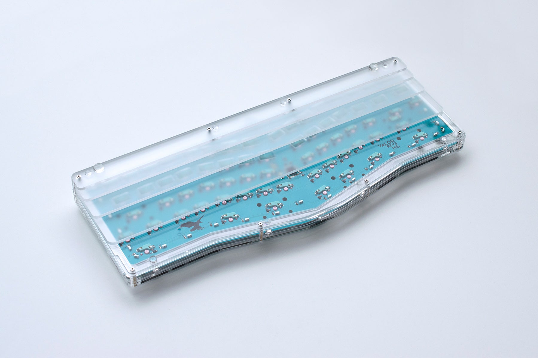 This kit includes a PCB and an Impact Modified Acrylic plate. IM Acrylic has a stiffness between POM and PC.