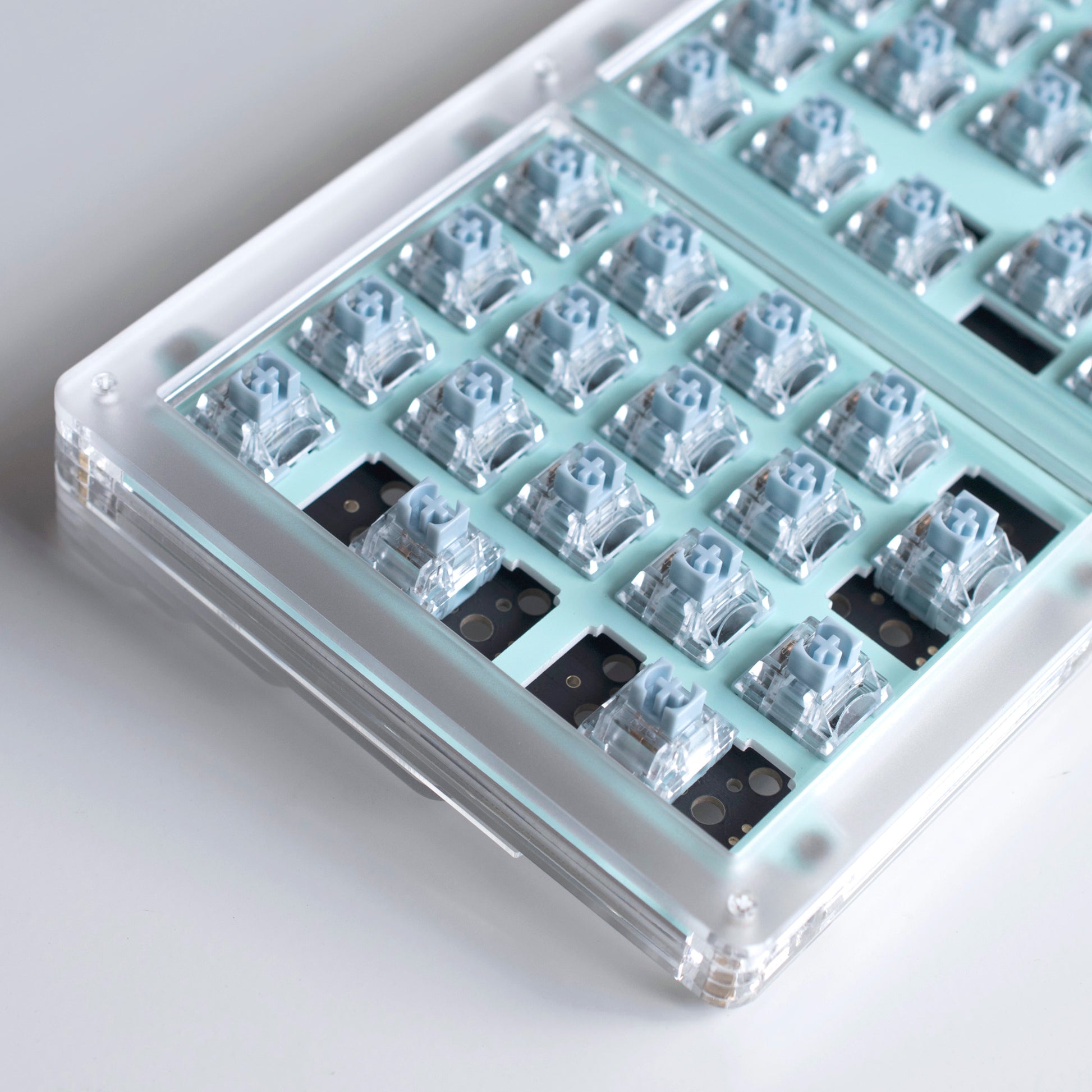 A protective layer is still attached to the acrylic pieces and needs to be removed. Dust is easily attracted when removing this film, so I recommend having a damp microfiber cloth on-hand. BE CAUTIOUS FOR ESD.