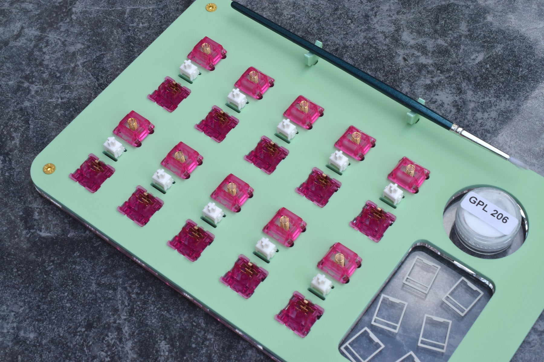 It’s ideal to work on opened switches as quickly as possible because the longer they’re open and exposed, the higher the chance they could collect dust. A maximum of 10 switches can be held in this lube station because Idyllic believes this is a safe number of switches to do per batch, while not having parts uncovered for too long.