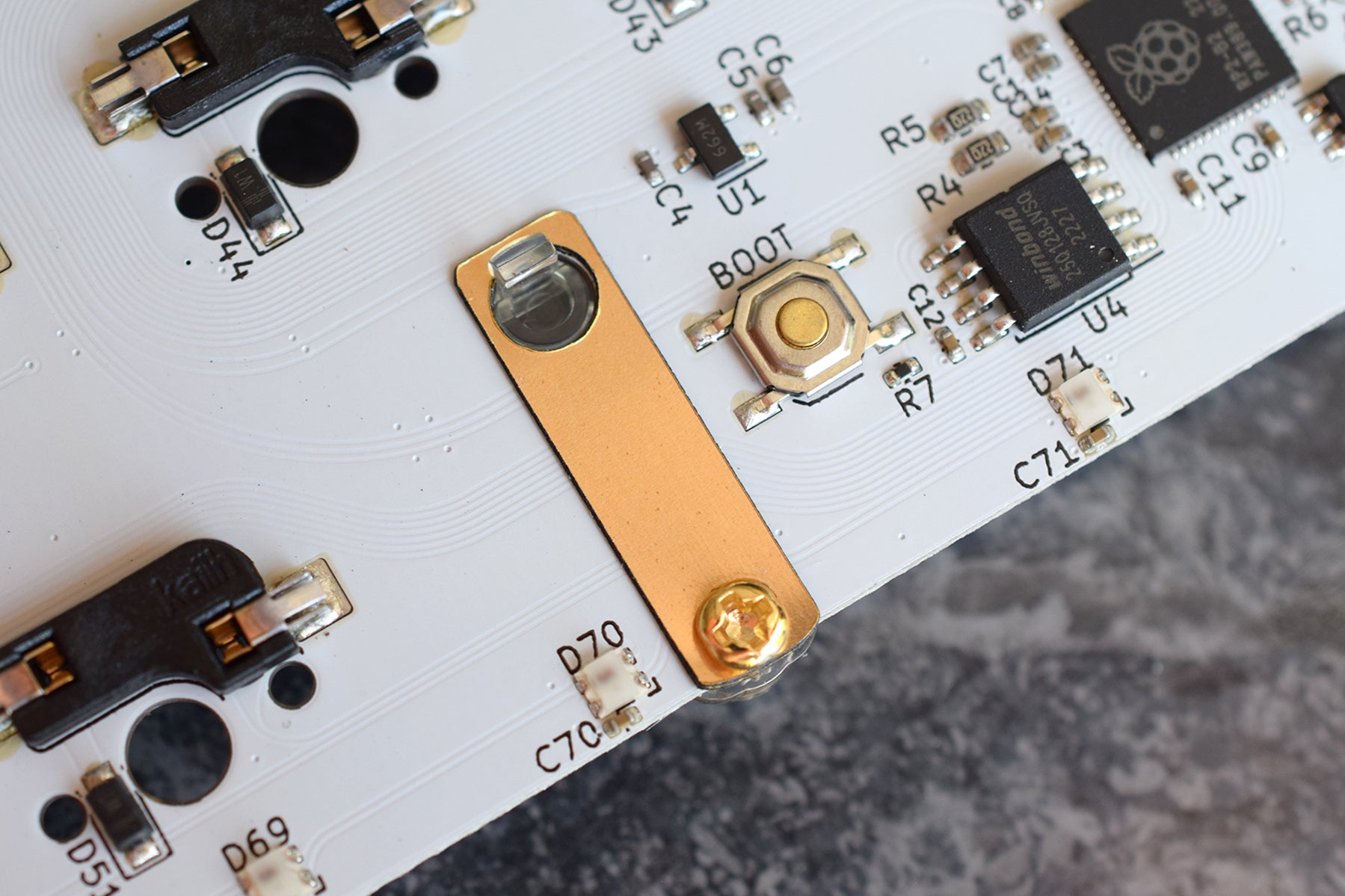 These stickers go on the underside of your 1.2mm PCB and help add a bit more thickness. The advantage of using an adhesive material is that the shim will stay in place and not fall off; this makes installing stabilisers less "fiddly".